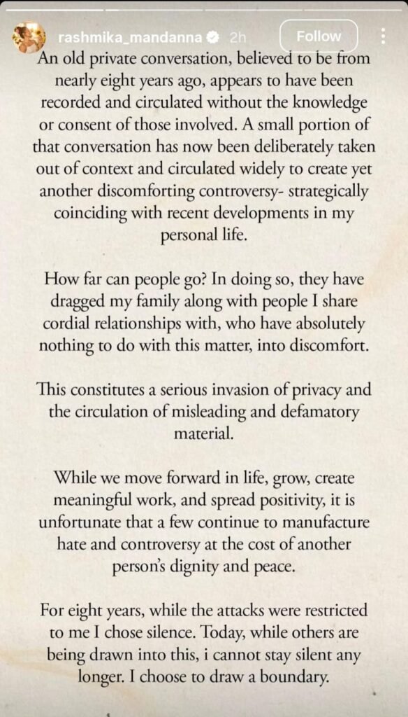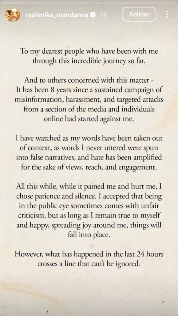 Known for her work across multiple film industries, Rashmika Mandanna remains one of the most prominent actors in Indian cinema today. With her latest statement, she has drawn a clear line on issues involving personal privacy and misinformation circulating on digital platforms.