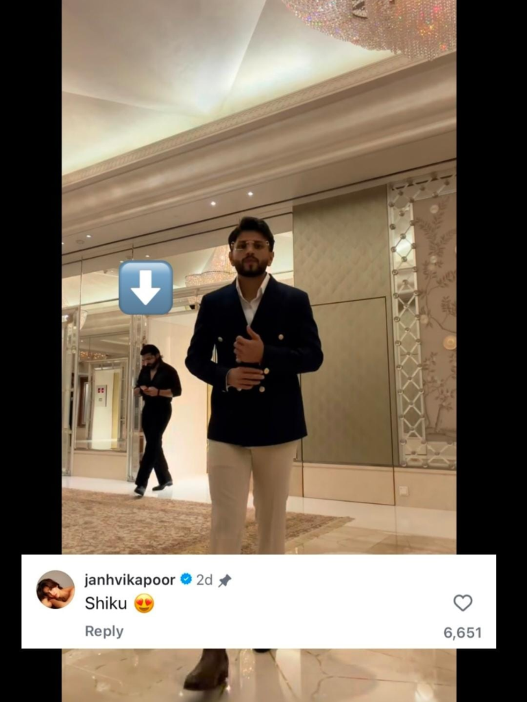Amid the growing chatter, Janhvi’s reaction stole the spotlight. The actress dropped a cheerful comment, “Shiku,” accompanied by a heart-eyes emoji, subtly yet openly expressing her admiration. The brief but heartfelt response struck a chord with fans, who flooded the comments section with love and excitement over the duo’s equation.