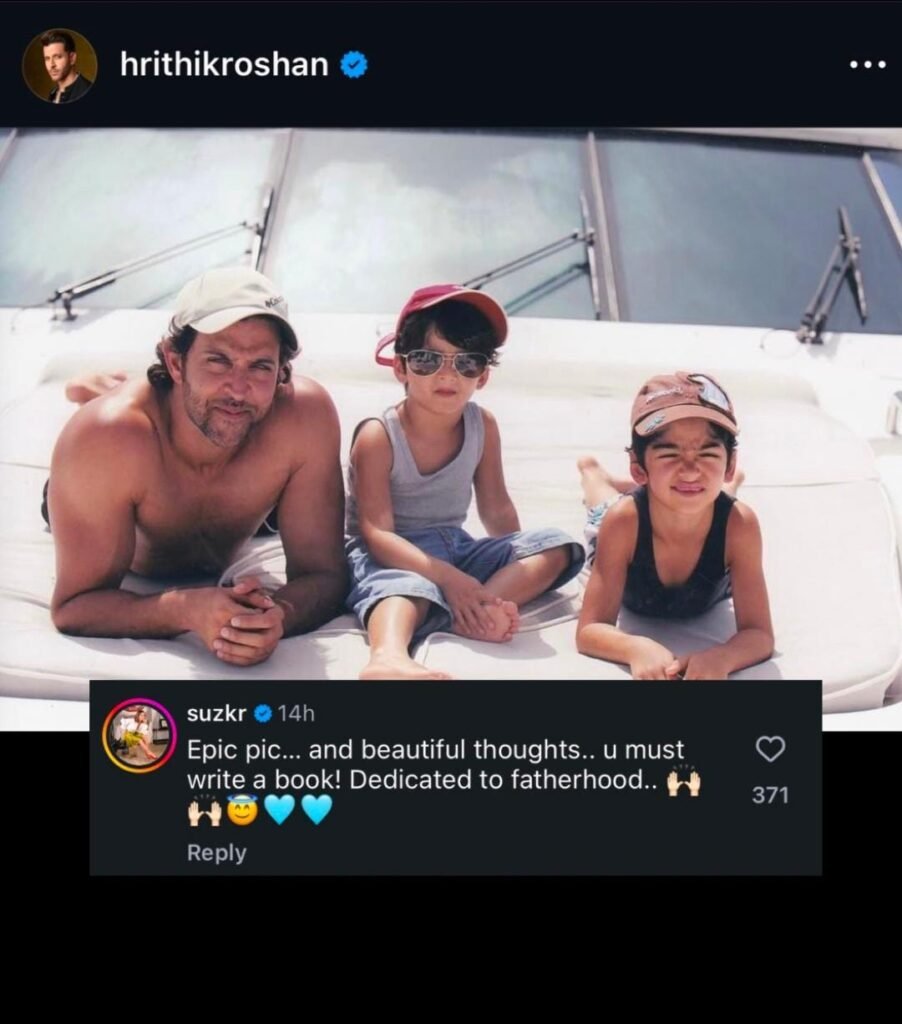 Soon after the post went live, Sussanne reacted in the comments section with a warm and supportive message. Praising both the photograph and Hrithik’s thoughtful caption, she wrote, “Epic pic… and beautiful thoughts… u must write a book! Dedicated to fatherhood…”
