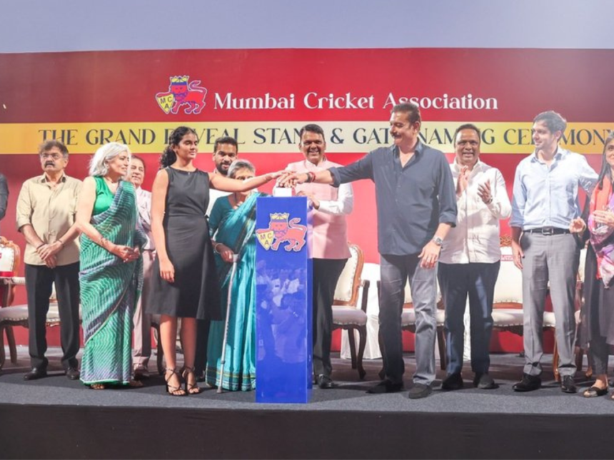 The unveiling ceremony was attended by several dignitaries, including Maharashtra Chief Minister Devendra Fadnavis, Cabinet Minister Ashish Shelar, and MCA President Ajinkya Naik. Cricketing legends such as Sunil Gavaskar and Dilip Vengsarkar were also present, along with members of the Mumbai Cricket Association and other officials.